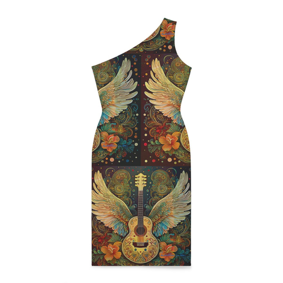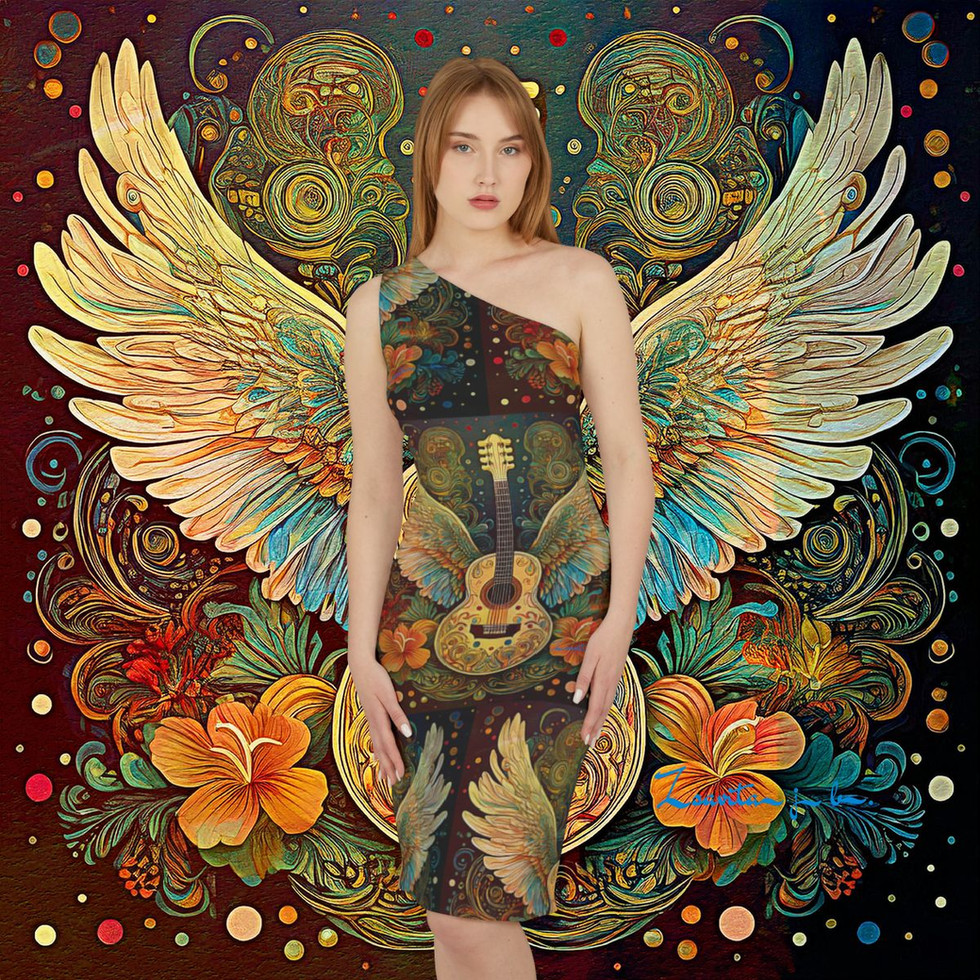 Embrace a unique kind of elegance in this one-shoulder dress featuring a fitted silhouette and a knee-length straight hem designed by the artist Zsavita for ZAVVAZ. With a sleeveless design and true-to-size fit, it's perfect for any occasion. The hidden side 14" zipper ensures easy dressing, while the YKK invisible nylon upholstery zipper offers a seamless finish. Featuring non-separating, closed-end construction with an automatic lock slider in white, this dress also has the artist signature logo incorporated within the design to ensure quality and authenticity for both functionality and fashionability.