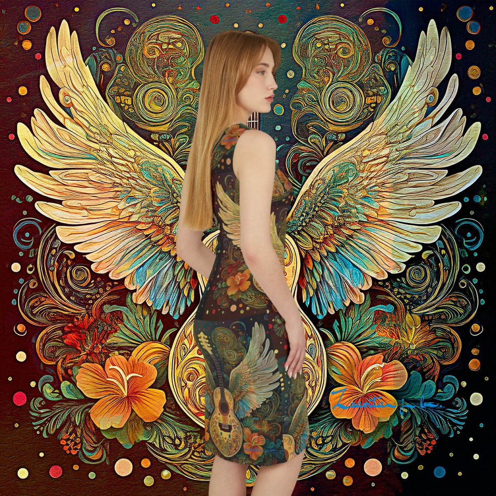 Floral Guitar Signature Logo Cold Shoulder Dress